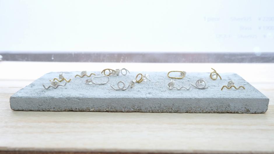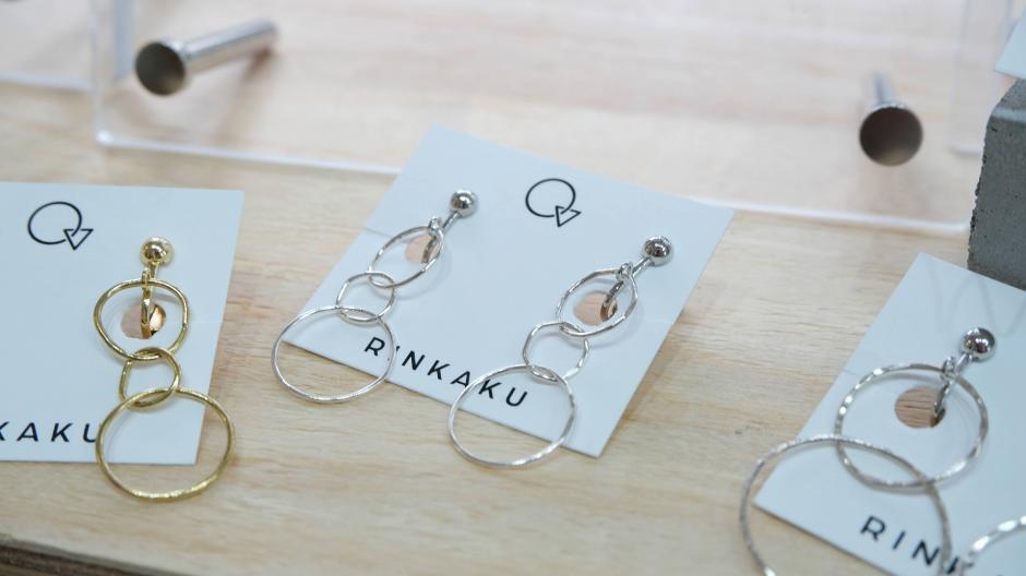 アクセサリーを身に着けることは体の輪郭を拡張すること、ととらえてアクセサリーを作られている「RINKAKU」さん。メインの素材は真鍮とシルバー。シンプルでスタイリッシュな輪郭を持つアクセサリーが身に着ける人をより魅力的に見せてくれます。