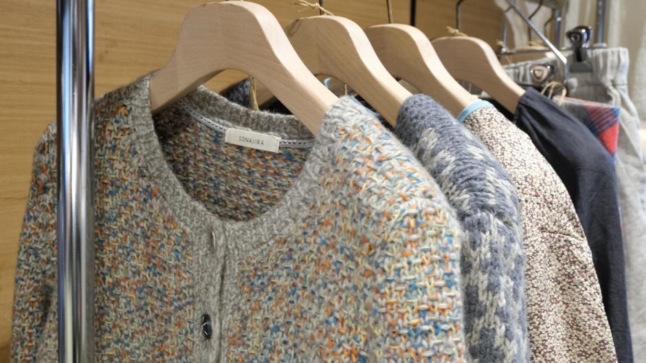 デザイン、パターン、縫製と服飾づくりのすべてを自分でされている「SONAJIRA」さん。空気をまとうようなデザインが印象的です。ニットのアイテムもあります。
