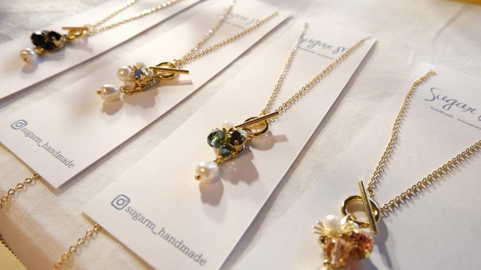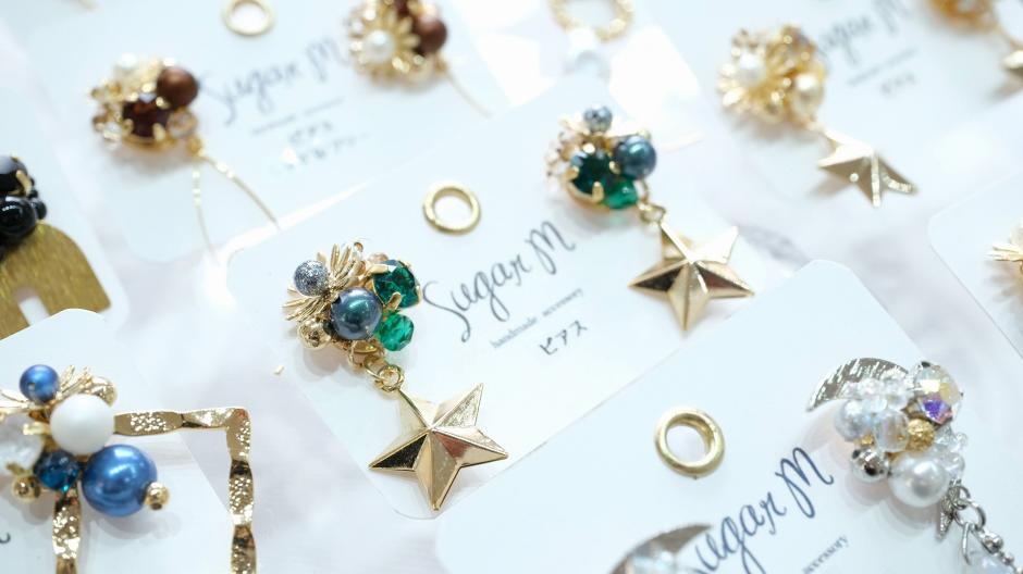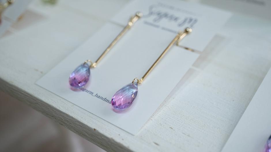 推し色アクセサリーが選べちゃう「Sugar M」さんの大人可愛いアクセサリーたちです。おしゃれしながらちらりと推しを主張できちゃう素敵なアクセサリーですね!