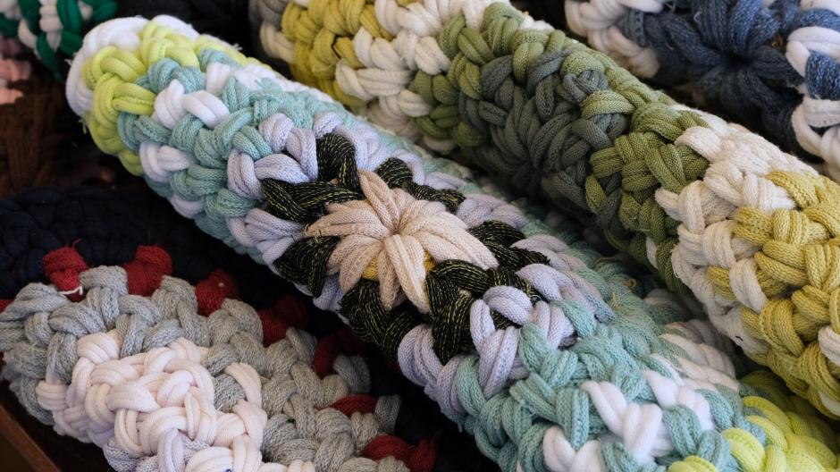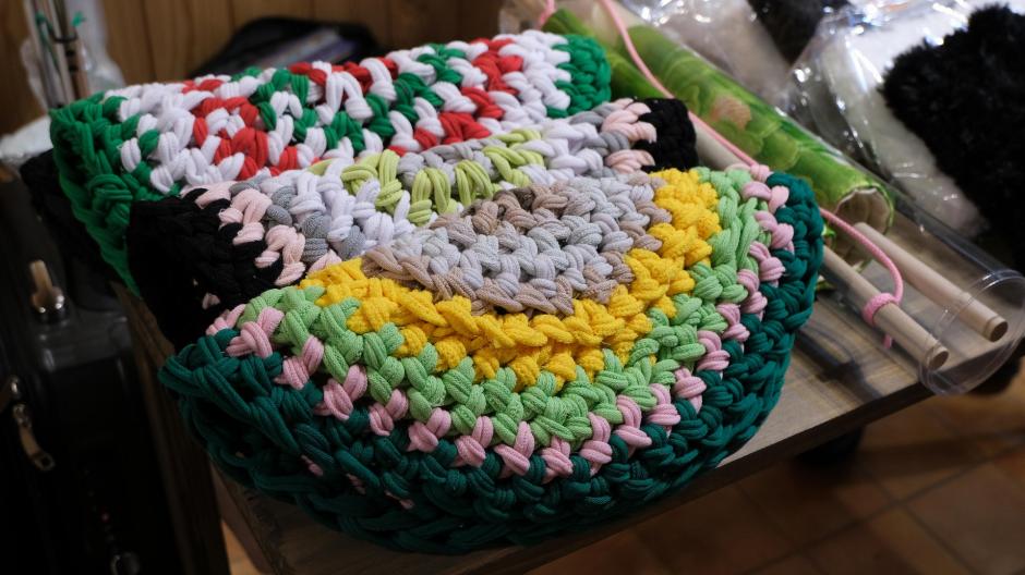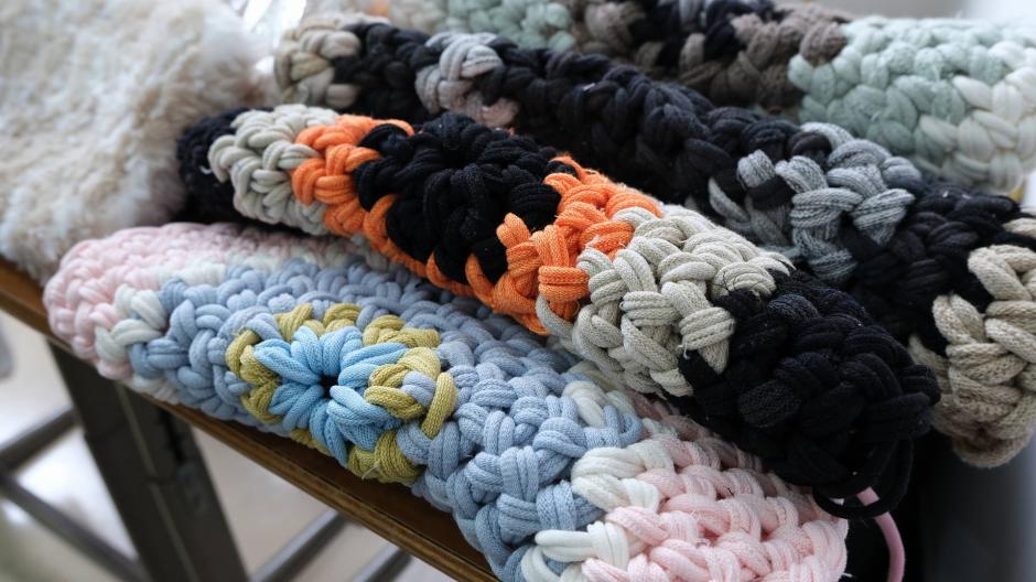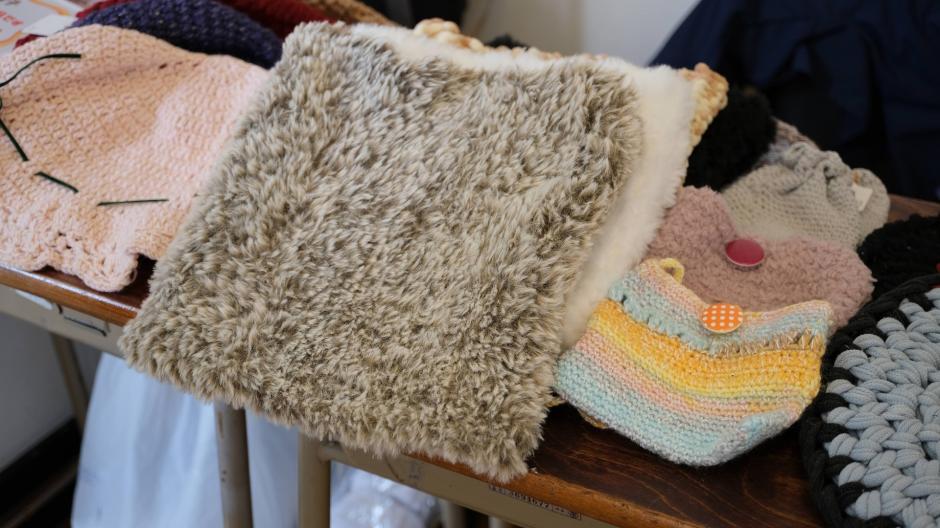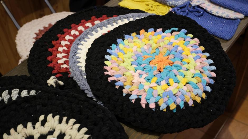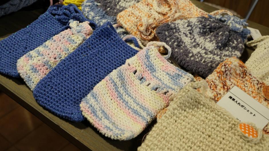 手編みのポーチに帽子、小さめのマットなどチームで作った「チームハーネス」さんの作品は、手作りならではのあたたかさが感じられます。