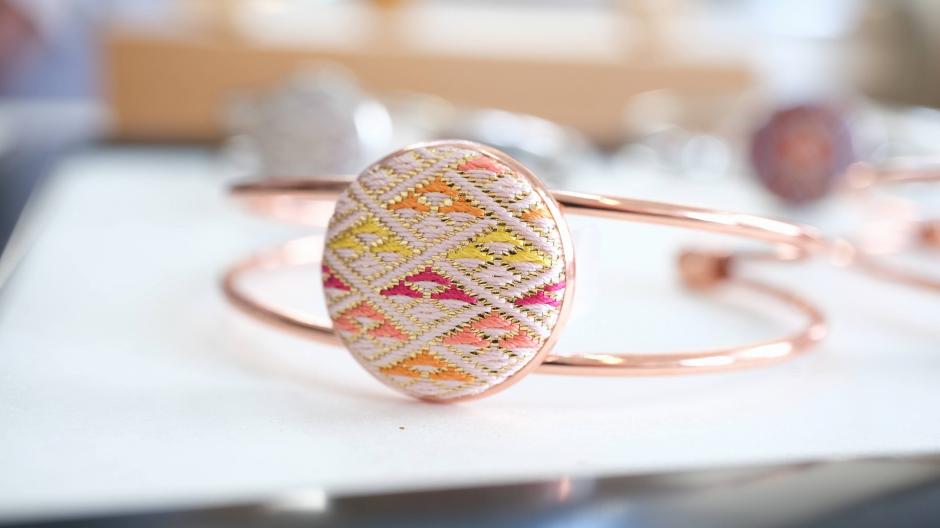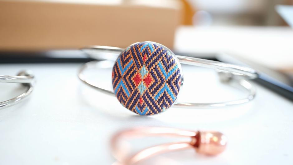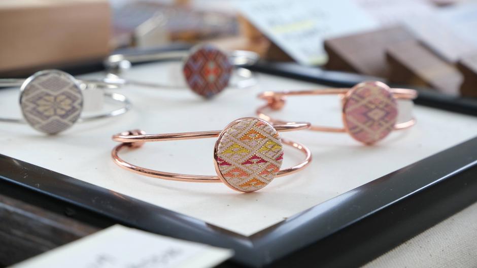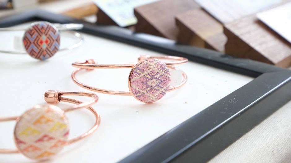 伝統工芸である佐賀錦を織られる「teorisaganishiki.el」さん。実は紙だという黄金色の縦糸に、絹の横糸を通し、一日数センチという大変な手間暇をかけて織り出される佐賀錦はぴかぴかと光っています。卓上サイズの手織り機で織られた佐賀錦は、身に着けやすいアクセサリーや、がま口などになっています。普段使いに佐賀錦を取り入れてみませんか?