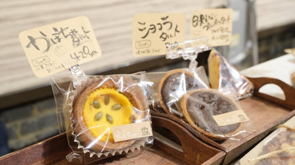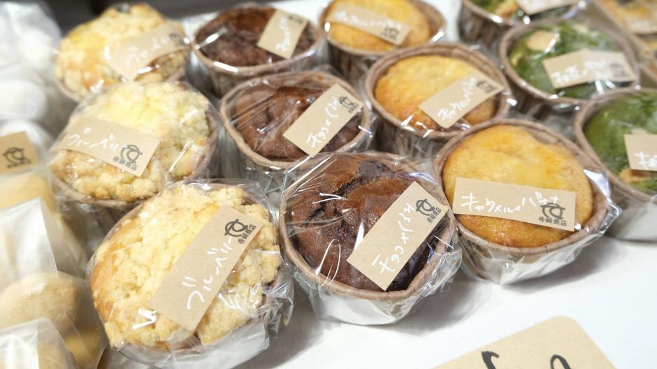 おやつタイムが楽しみになるお菓子がたくさんの「寺﨑商店」さん。無限クッキーはやめられないとまらないなのに実際は有限クッキーなんです、いけず…。旬を感じる果物や芋などを使った季節のタルトも人気です。