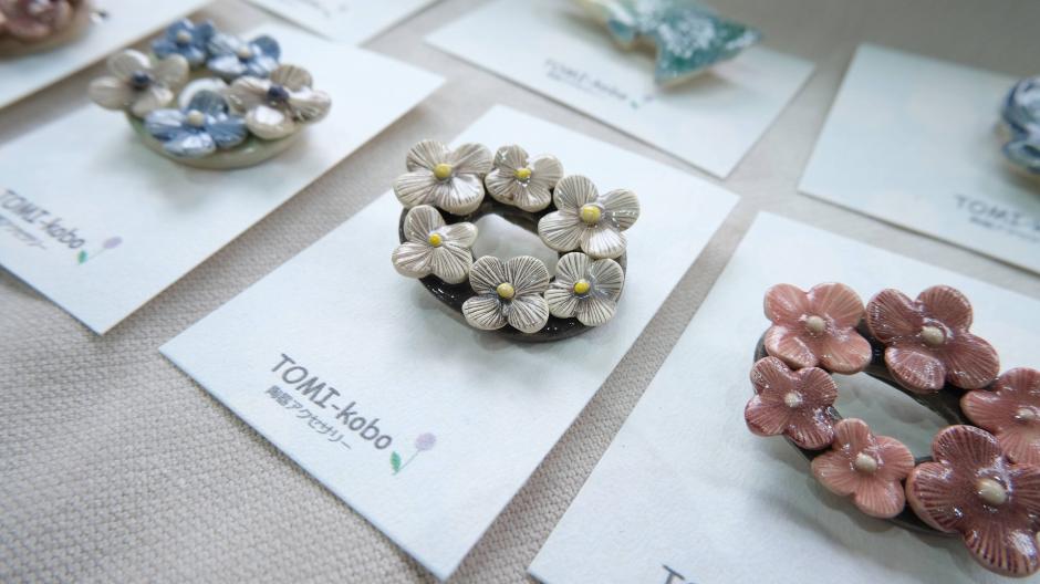 陶器のアクセサリーです。ぜひ手に取ってご覧ください。