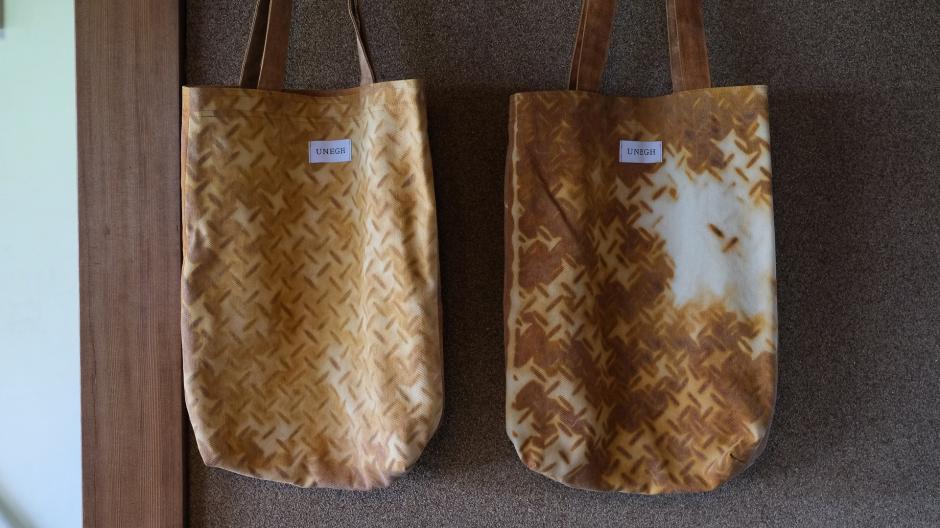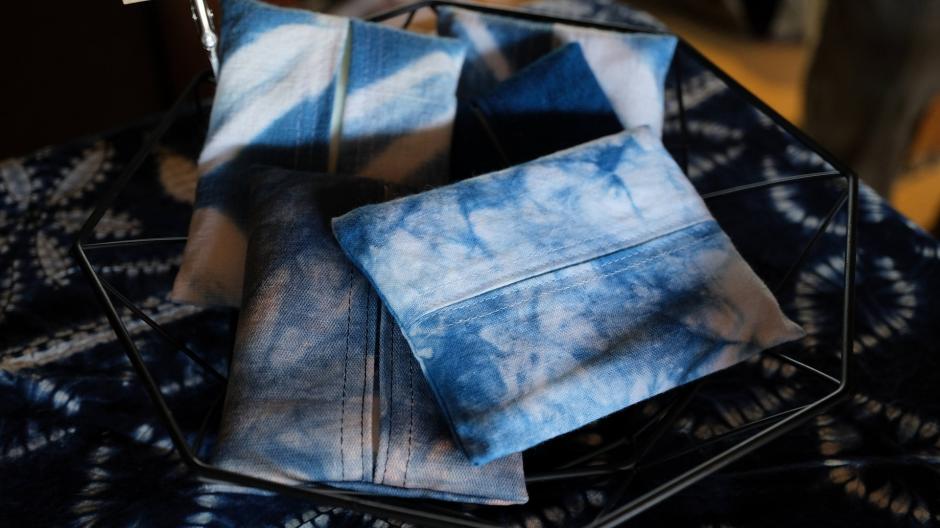 天然染料を使い、何度も何度も布を染め上げてようやく出来上がった「UNEGH」さんの作品たち。染め上がりの表情は一期一会。お気に入りになりますように。