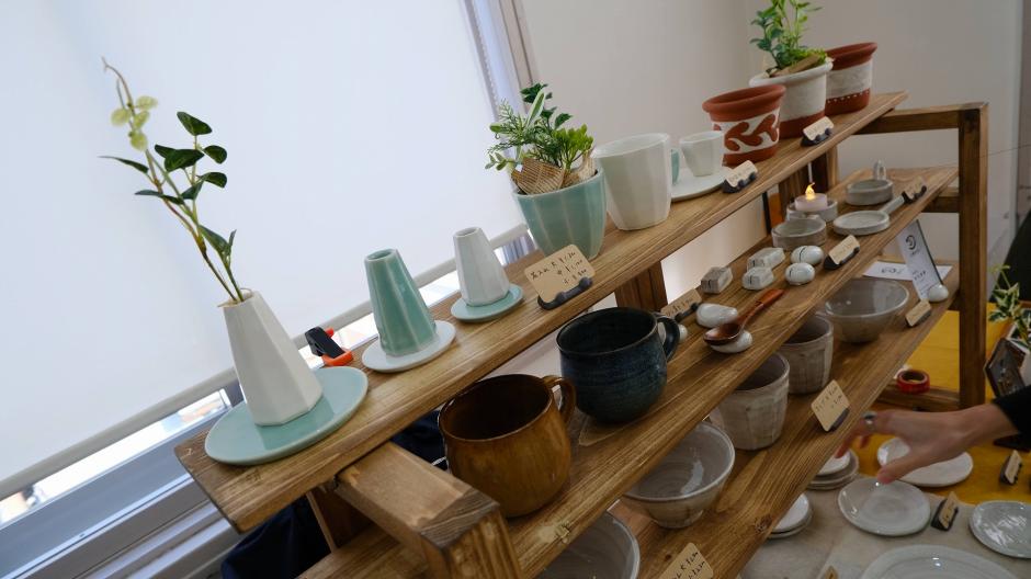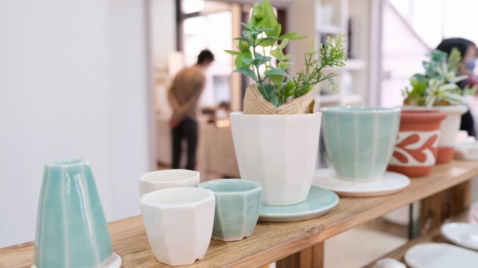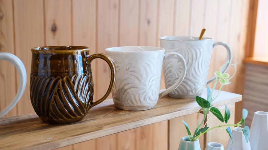淡い色合いのものから、しっとりした色合いのものまで、キャラクター豊かな器を作られる「工房わらし」さん。インテリアに取り入れやすい花器の他、カップなど、使いやすいサイズの陶磁器です。