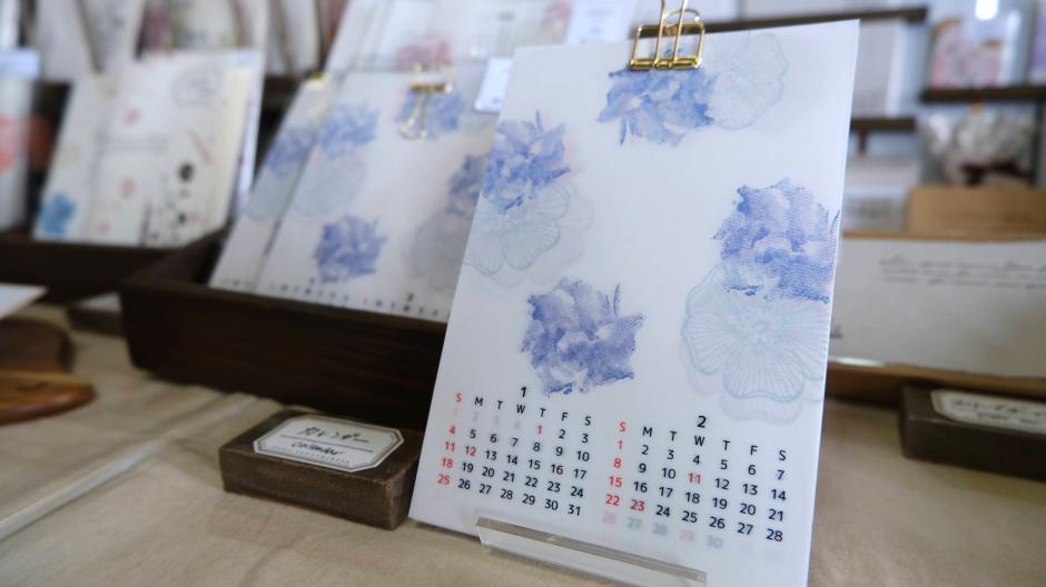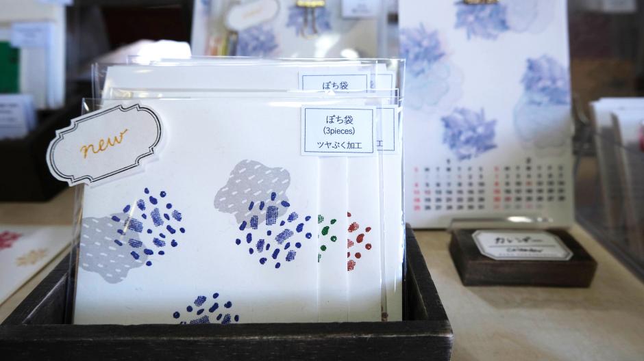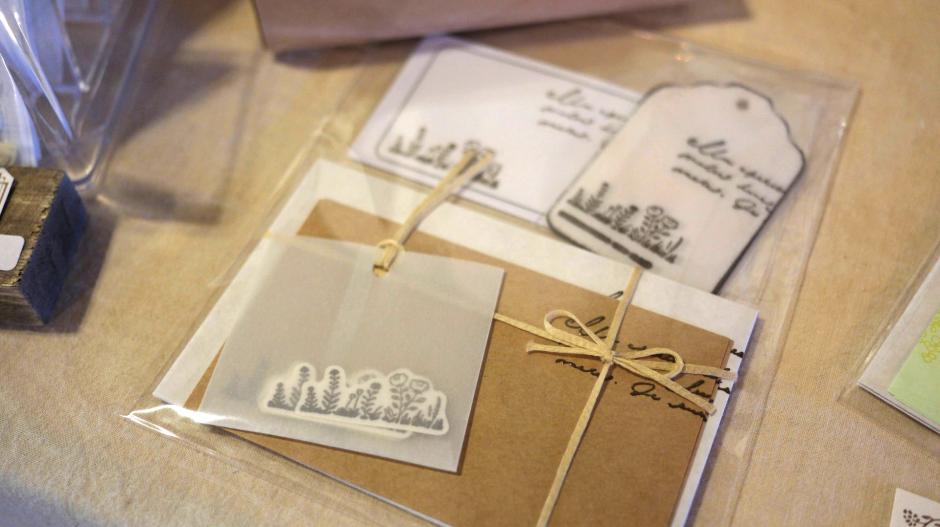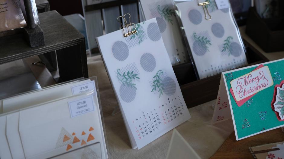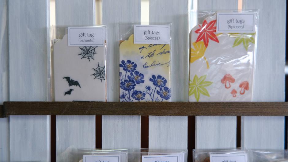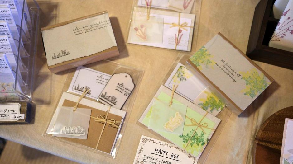 スタンプを組み合わせてデザインし、すべて手捺しして制作した紙ものを扱っています。印刷とは違う風合いをお楽しみください。